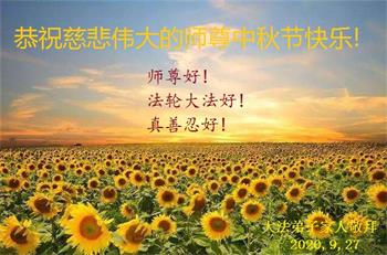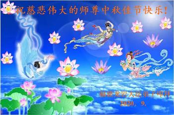 师尊辛苦了,感恩师尊的慈悲救度!弟子虽然流离失所在外,也会铭记师尊的教诲,做好三件事,精進再精進,叩拜师尊! 福建龙岩大法弟子恭祝师尊中秋节快乐!