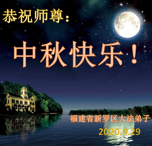 每逢佳节倍思亲,2020年中秋佳节来临之际,我们老年大法弟子向慈悲伟大的师尊致以最崇高敬意,师父您好,师父您辛苦了!我们会珍惜修炼,学好法,多学法,精進实修,在法上提高。做好三件事,多救人。 福建省福州一大法弟子恭祝师父中秋快乐!
