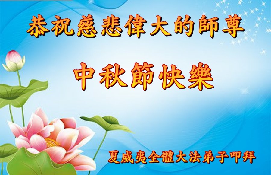 在最后的正法進程中,不消沉懈怠,修正一思一念。奋力精進。感谢恩师慈悲救度! 美国夏威夷一中年大法弟子恭祝师父中秋节快乐!弟子叩拜!
