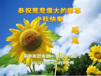 师尊您好! 为了带领众生在末法之时走出劫难,您“操尽人间事,劳心天上苦”,用尽人类再好的语言也描述不出您艰辛的付出和对众生的无量慈悲,弟子唯有感恩,精進,达到法的更高标准和要求,不断向上攀登,提高心性,提高层次,越来越纯净自己,做自己该做的,让众生多得救,少留下遗憾,让师尊多增添欣慰和快乐! 二零二零年九月三十日 辽宁省葫芦岛市化工地区一学法小组大法弟子恭祝师尊中秋快乐!