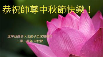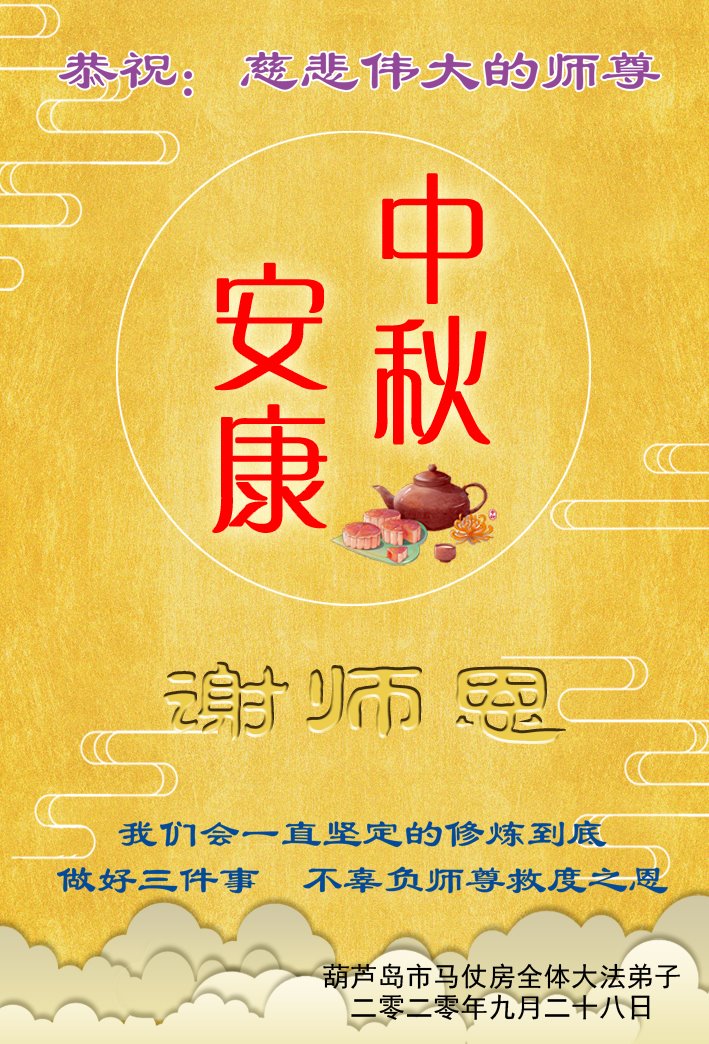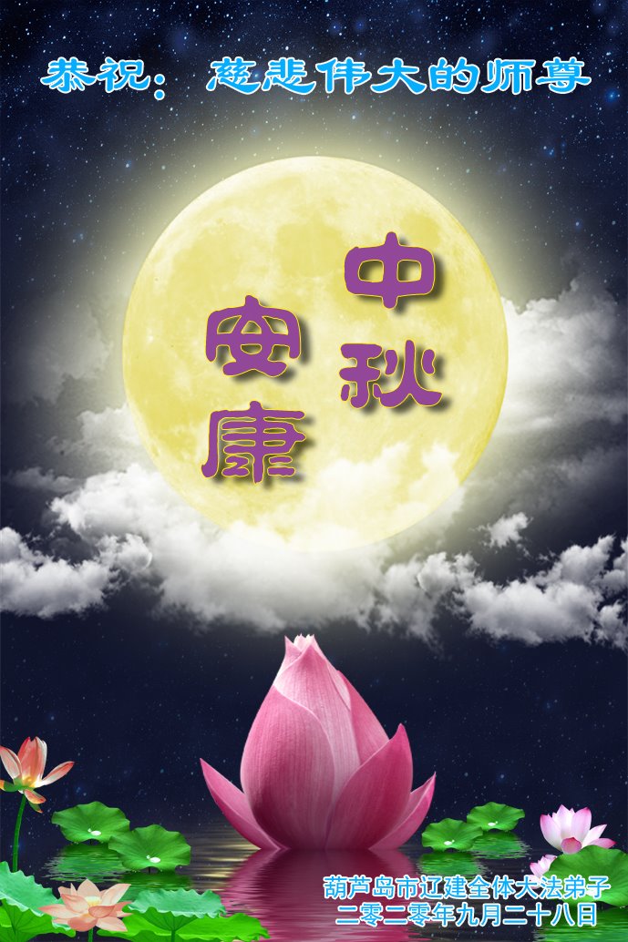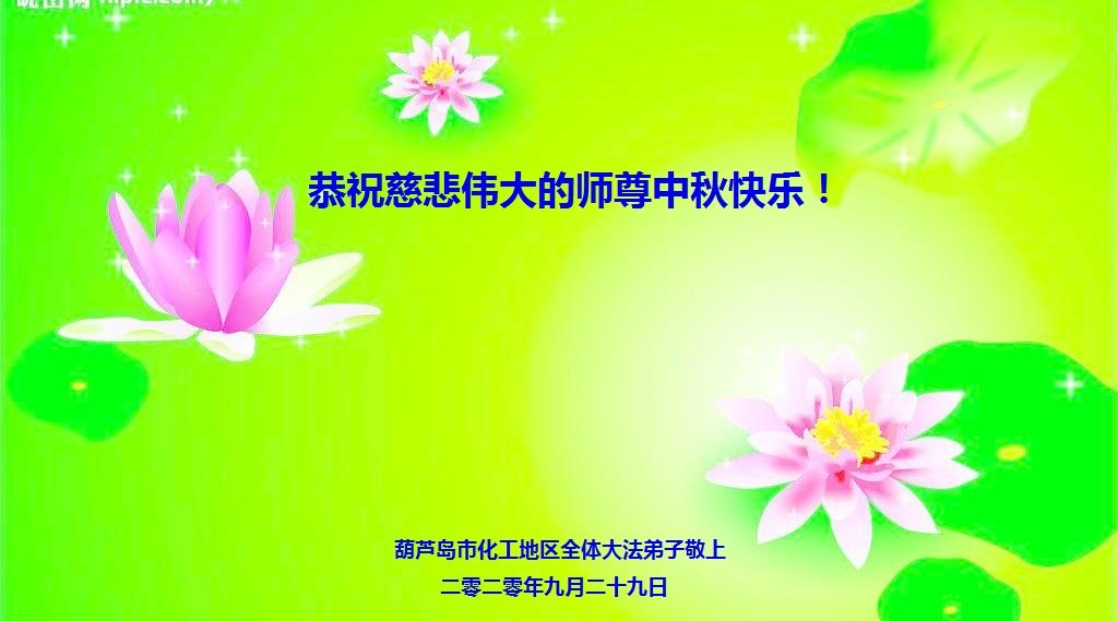 【明慧网二零二零年十月一日】 辽宁省葫芦岛市龙港区马仗房全体大法弟子恭祝慈悲伟大的师尊中秋节快乐!