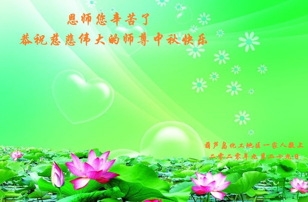 感恩师尊慈悲救度,师父您辛苦了! 辽宁葫芦岛市大法弟子及家属恭祝师尊中秋节快乐!