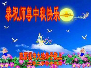 祝师尊中秋快乐!我们大家非常想念您。盼望早日与师父团聚,感恩师尊救度之恩。我们只有做好大法弟子该做的事来报答慈悲伟大的师父!师父辛苦了! 陕西一名大法弟子跪拜恭祝师尊中秋节快乐!