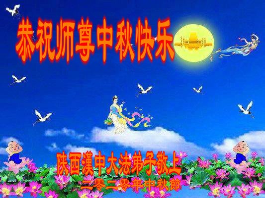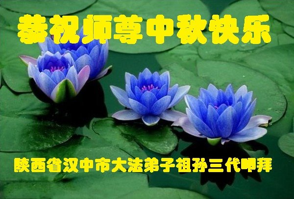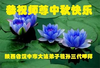 师尊您好!祝师尊中秋节快乐! 法轮大法好!真善忍好! 陕西省宝鸡市一青年大法弟子敬上 陕西省汉中市大法弟子祖孙三代恭祝师尊中秋节快乐!