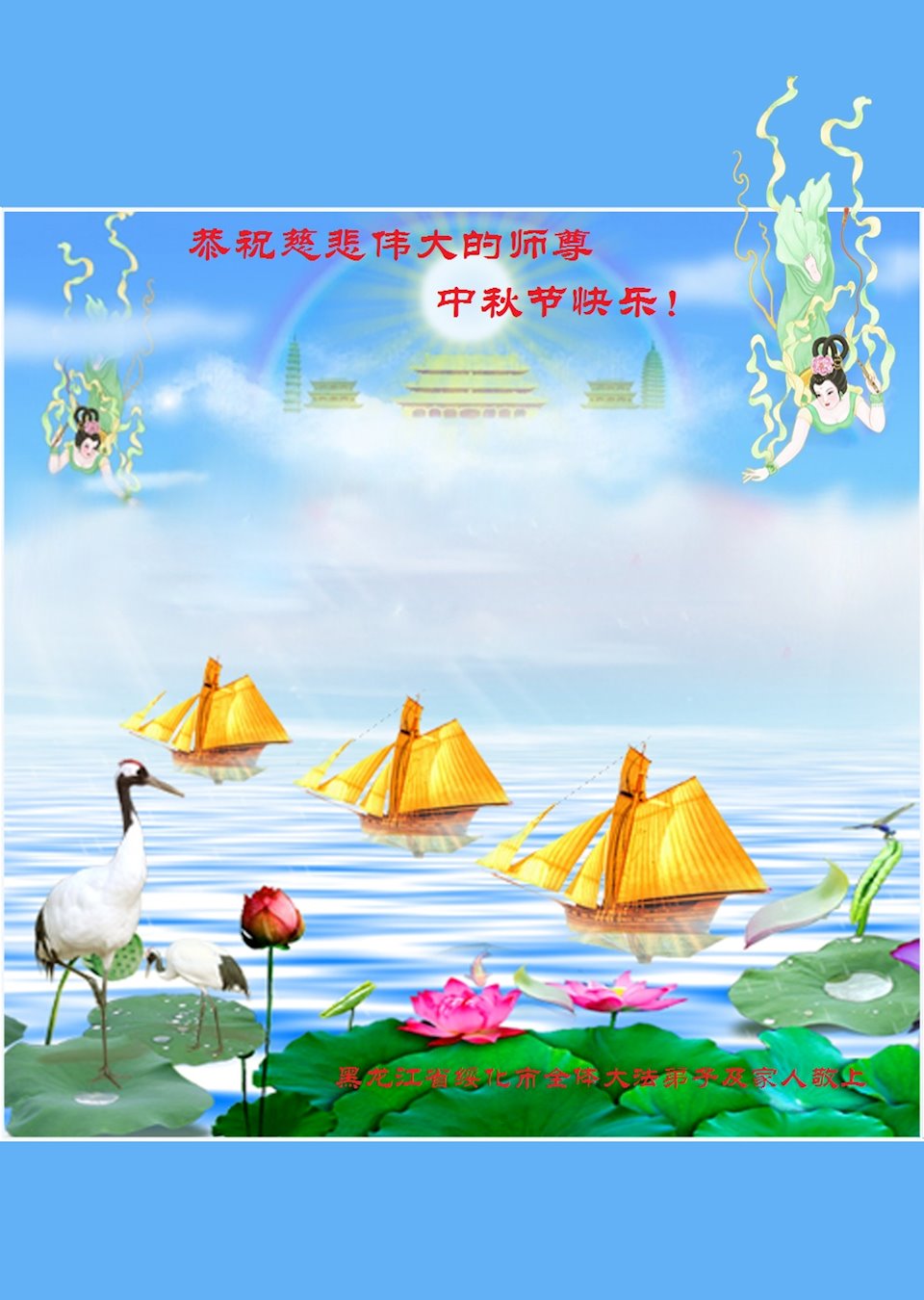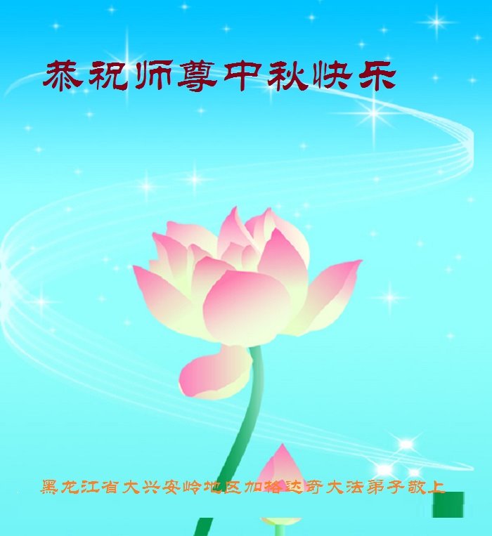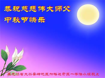 黑龙江省大兴安岭地区加格达奇区一学法小组大法弟子敬上 黑龙江省大兴安岭地区加格达奇区讲真相小组大法弟子恭祝慈悲伟大的师尊中秋节快乐!