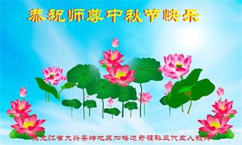 黑龙江省大兴安岭地区加格达奇区讲真相小组大法弟子敬拜 黑龙江省大兴安岭地区全体大法弟子恭祝师父中秋节快乐!