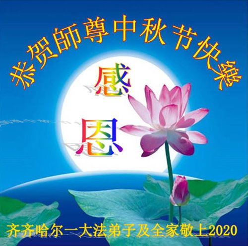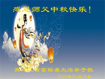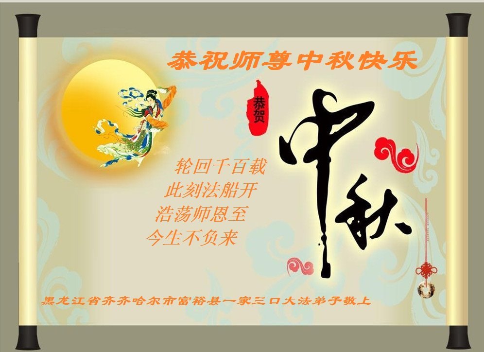 【明慧网二零二零年十月一日】 黑龙江省齐齐哈尔市富裕县一家三口大法弟子恭祝师父中秋快乐!