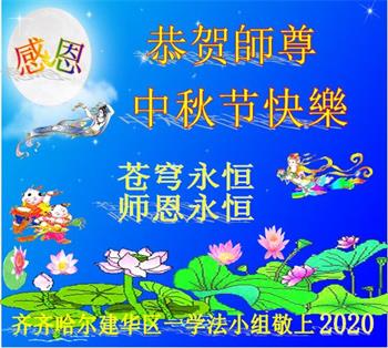 黑龙江省齐齐哈尔市建华区一学法小组大法弟子恭祝慈悲伟大的师尊中秋节快乐!