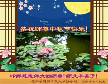 【明慧网二零二零年十月一日】 云南省昆明市大法弟子恭祝慈悲伟大的师尊中秋佳节快乐!