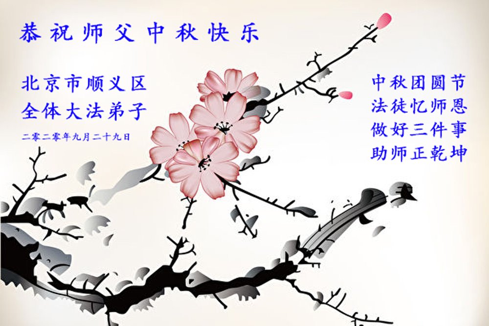【明慧网二零二零年十月一日】 北京市顺义区全体大法弟子恭祝慈悲伟大的师父中秋快乐!