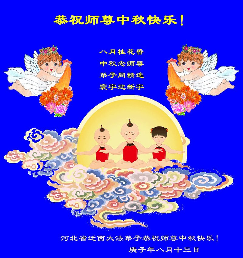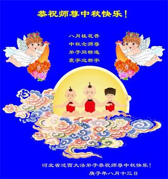 谢谢师尊的慈悲苦度!师尊为弟子们付出的太多了,弟子们唯有听从您的教诲,在法上实修,助师正法、多救人才是对师尊最好的报答。 河北唐山玉田大法弟子恭祝师尊中秋节快乐!