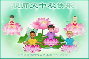 谨代表小组五名大法弟子和两名小弟子恭祝师父中秋节快乐! 二十多年来,弟子们盼望着和师父团圆。感谢师父的保护与慈悲苦度,谢谢师父、谢谢师父! 弟子叩拜于9月28日 山东省烟台一家大法弟子三人携大法小弟子恭祝慈悲伟大的师尊2020中秋节快乐!