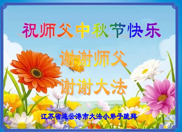我们小组在师尊的慈悲保护下已走过了十几年。老弟子渐渐成熟起来;小弟子修炼的根也深深扎在法轮大法这片净土中。在这正法的最后关头,我们会更加精進,不负恩师的重托,紧跟正法進程,最大限度的放下人心,修好自己,救度更多的众生,跟师父圆满回归! 江苏省连云港市大法小弟子恭祝师父中秋节快乐!