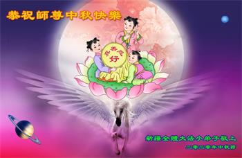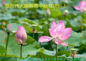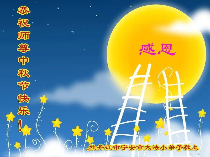 恭祝师尊中秋节快乐!尊敬的师父您辛苦了!感谢师尊慈悲苦度!弟子一定做好三件事,跟师父回家!大连开发区一家大法弟子和孙女大法小弟子敬上!合十 山东聊城金融系统大法弟子和家中的大法小弟子恭祝师尊中秋节快乐!