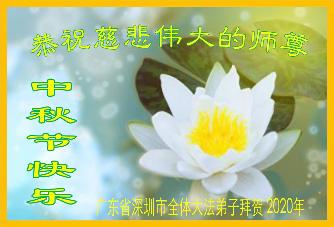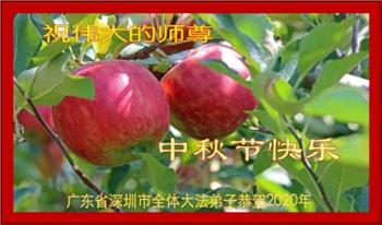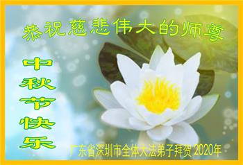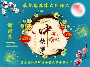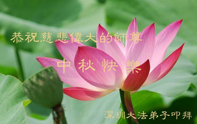 感谢师父的慈悲苦度!我们会扩大心胸,精進起来,努力做好三件事。感恩师尊的慈悲救度! 广东省深圳市大法弟子恭祝师尊中秋节快乐!