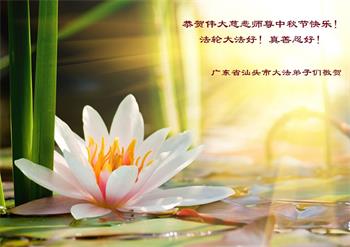 广东省汕头地区全体大法弟子恭祝慈悲伟大的师尊中秋佳节快乐!