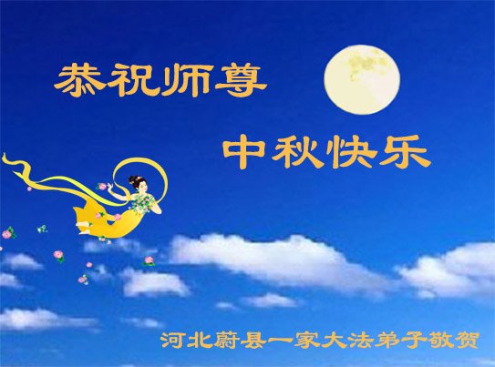 恭祝师尊中秋快乐! 师父辛苦了!谢谢师父! 我们一定精進实修,做好三件事,多救人,不辜负恩师的慈悲救度! 谢谢师父! 河北省张家口市蔚县一家大法弟子恭祝师尊中秋快乐!