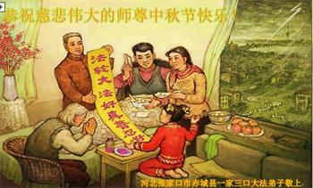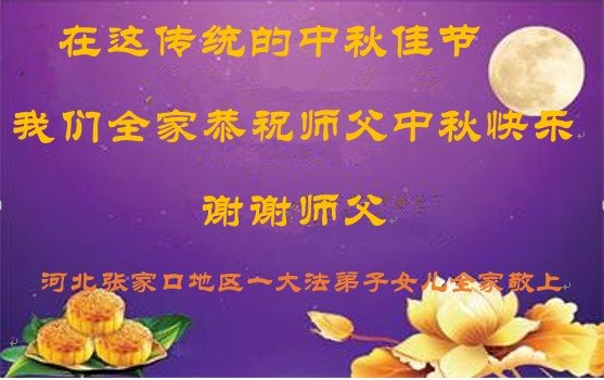 张家口市一家三口代表本市不能上网的大法弟子恭祝慈悲伟大的师父中秋节快乐! 张家口市大法弟子敬祝 2020年9月27日 |