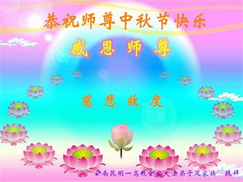 云南昆明一高校全家大法弟子及家族恭祝师尊中秋节快乐!