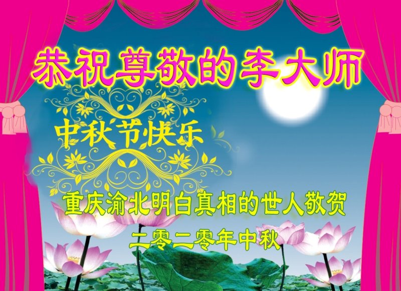 湖北省襄阳市一大法弟子及明白真相的家人感恩师父!祝师尊中秋快乐! 二零二零年九月二十九日 重庆大法弟子及明白真相的家人恭祝师尊中秋节快乐!