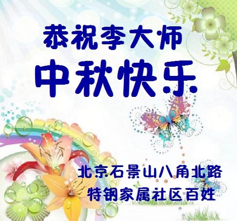 北京石景山八角北路特钢家属社区百姓恭祝李大师中秋快乐!