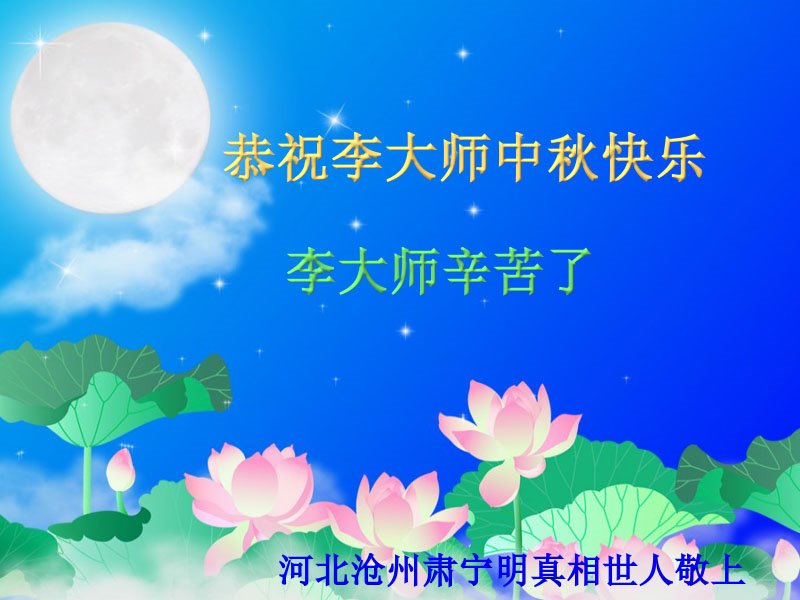 在中秋节到来之际,青岛市开发区全体大法弟子及家人和明白真相的世人祝师尊中秋节快乐!感谢师尊救度之恩!在有限的时间里,我们要多去人心、多救人,做好三件事。弟子叩拜师尊,合十 ! 上海明真相的世人恭祝李大师中秋节快乐!