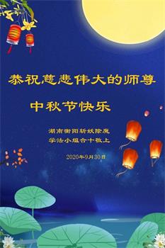 我们这群大法弟子一定用大法对大法弟子的要求和标准修好自己及做好三件事,报答师恩! 湖南衡阳一大法弟子恭祝师父中秋节快乐!