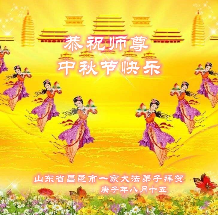 “海上生明月,天涯共此时”,值此中秋佳节来临之际,山东高密全体大法弟子及家属向慈悲伟大的师父献上最诚挚的问候和祝愿:祝师父中秋快乐!我们会更加精進,做好三件事,请师父放心! 山东潍坊市一大法弟子携家人恭祝师尊中秋快乐!感恩师父的慈悲救度!