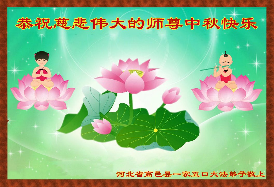 高邑县一家五口大法弟子恭祝慈悲伟大的师父中秋快乐!师父您好!师父辛苦了! 河北省石家庄市藁城东邑村全体大法弟子恭祝师尊中秋快乐!