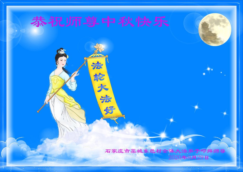 师父好!师父您辛苦了!谢谢师父! 中秋佳节念师尊 师为弟子操尽心 只有精進再精進 修好自己去人心 用心做好三件事 救度众生兑誓言 河北辛集市一学法小组大法弟子敬上 二零二零年九月二十九日 河北省石家庄市新华区大法弟子恭祝师尊中秋快乐!