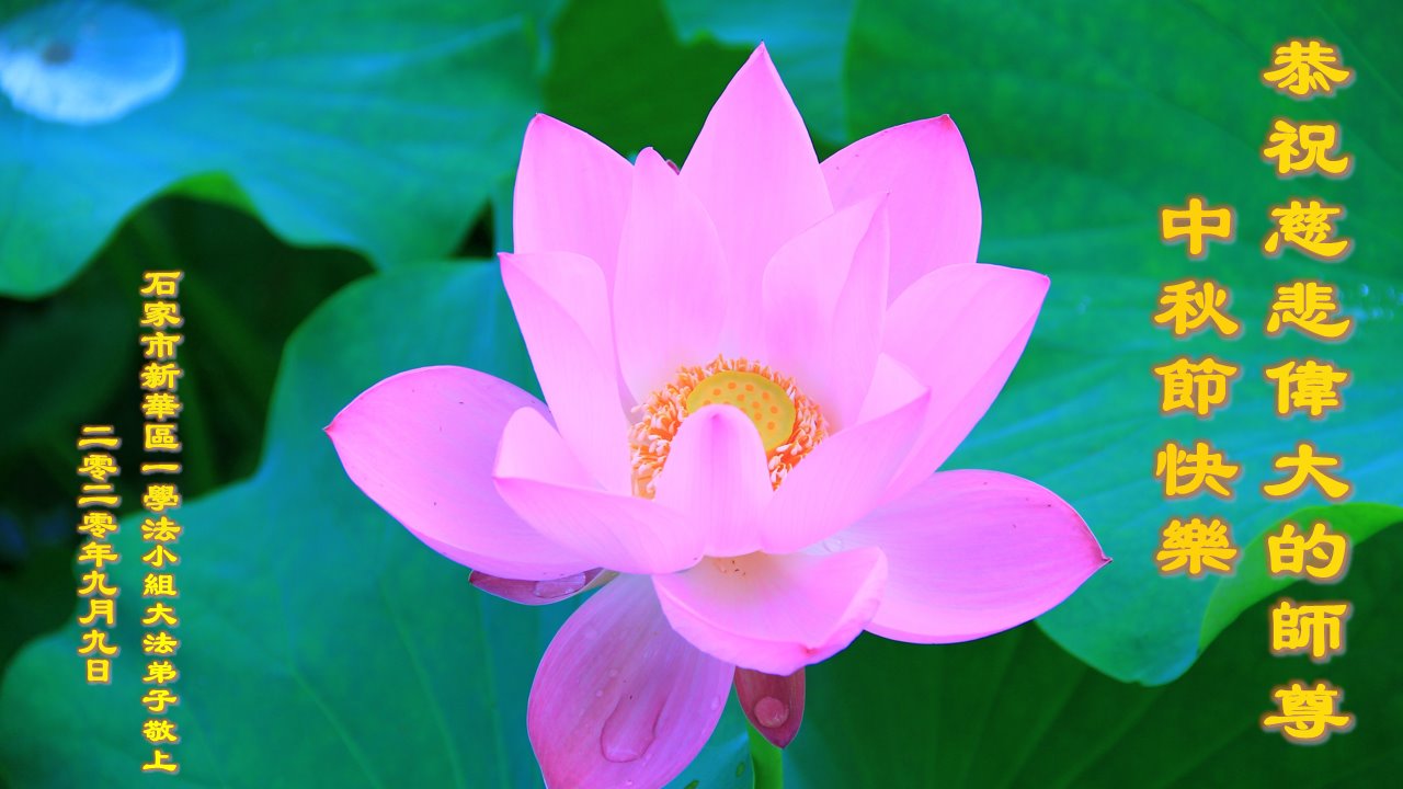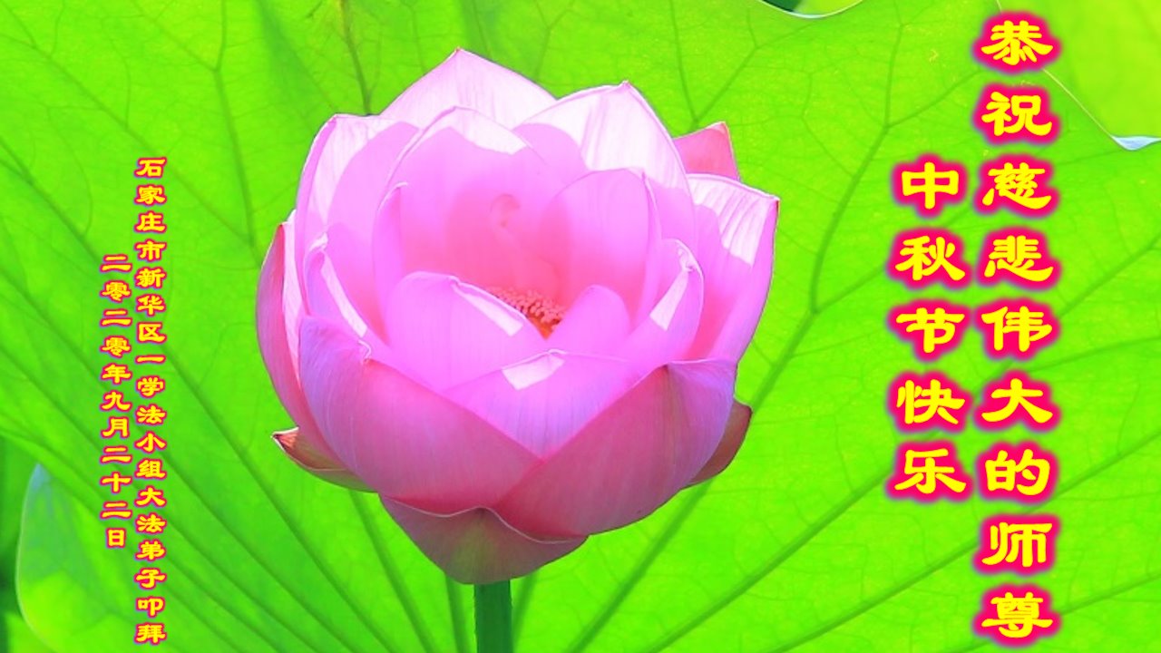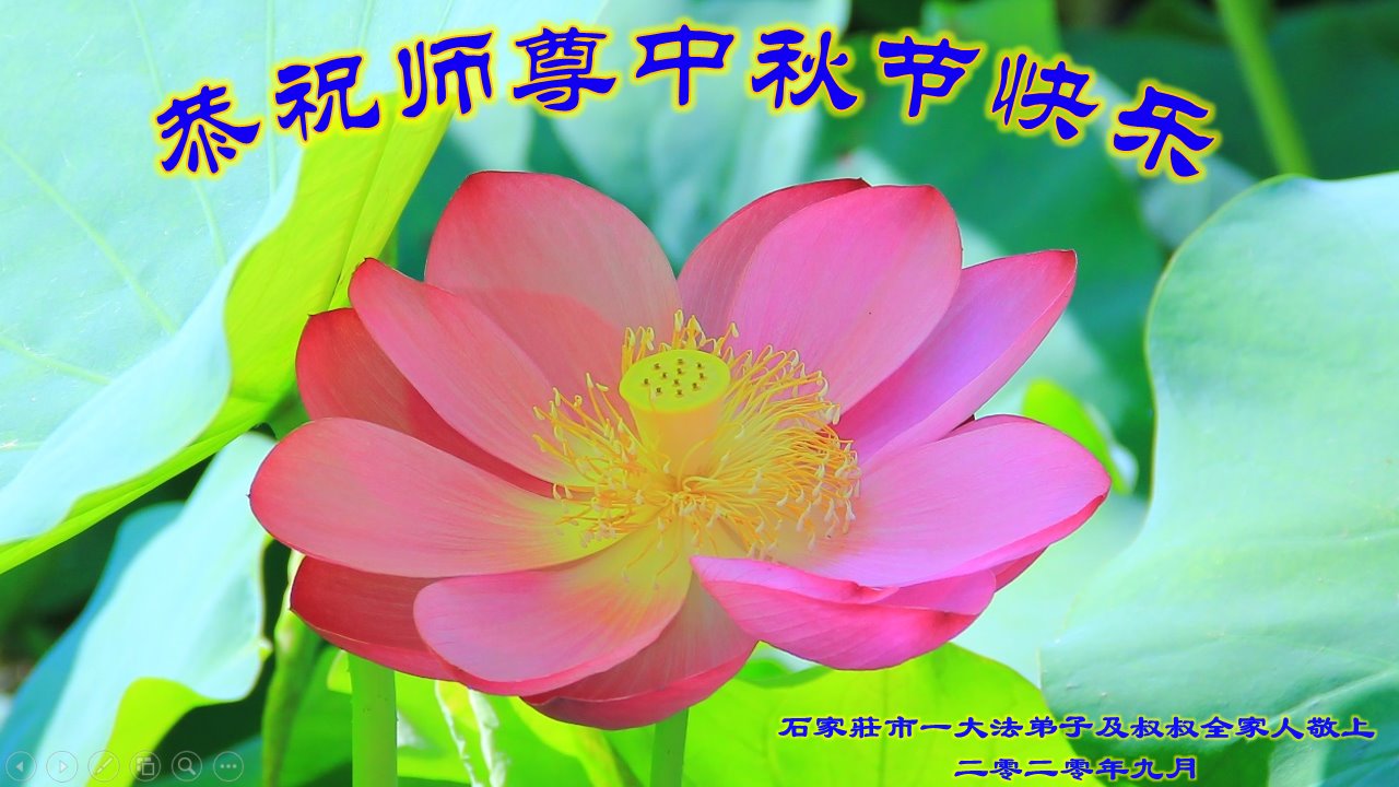 弟子叩拜师尊!回顾走过的岁岁月月,每一步都是在师尊的慈悲保护与加持下走过来的,师尊给予的和付出的是无法用语言表达的。弟子唯有精進,学好法、抓紧时间修好自己,多救人,做好三件事,做一个合格的大法弟子,跟师尊回家。弟子想念师尊,惟愿师尊笑,祝师尊中秋节快乐!正法顺利。 叩拜师尊! 河北石家庄大法弟子敬上 2020年9月29日 河北省石家庄市新华区一学法小组大法弟子恭祝师尊中秋节快乐!