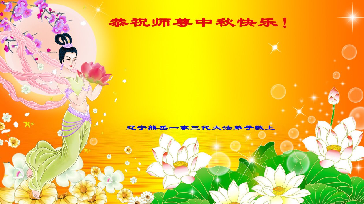 辽宁熊岳一家三代大法弟子敬上! 辽宁省营口市大石桥市全体大法弟子恭祝师尊中秋节快乐!