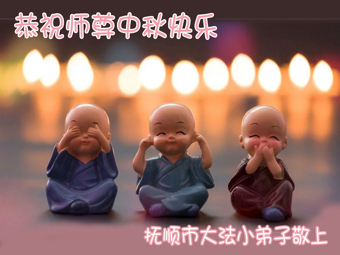 师尊您好!我们是大陆大法弟子夫妇,我们全家恭祝师尊中秋节快乐! 请师尊放心,弟子一定牢记您的教诲,学好法,修好自己,做好三件事,做一个合格的大法弟子,不给自己留下遗憾。跟师父回家。 辽宁抚顺一组大法弟子恭祝慈悲伟大的师父中秋节快乐!