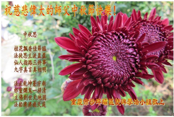 重庆市九龙坡区一大法弟子敬上 重庆大法弟子恭祝慈悲伟大的师尊中秋节快乐!
