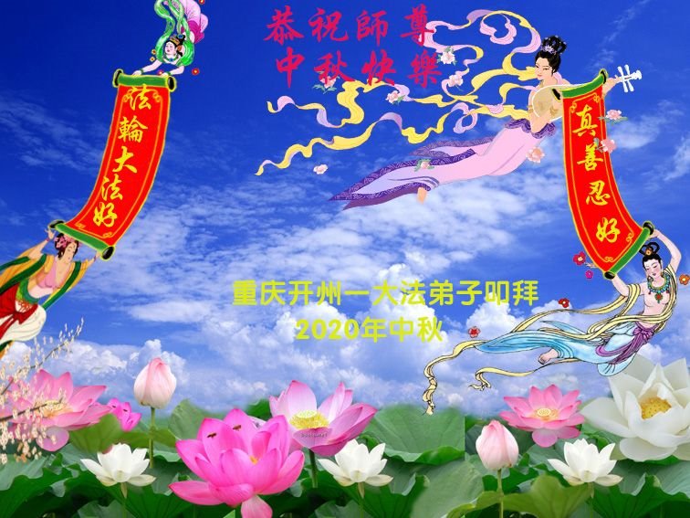 恭祝师尊中秋节快乐!感谢师尊的慈悲苦度!重庆市九龙坡区一家大法弟子敬上 二零二零年九月二十九日 重庆市九龙坡区一大法弟子恭祝慈悲伟大的师尊中秋节快乐!