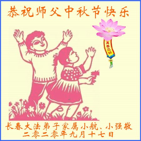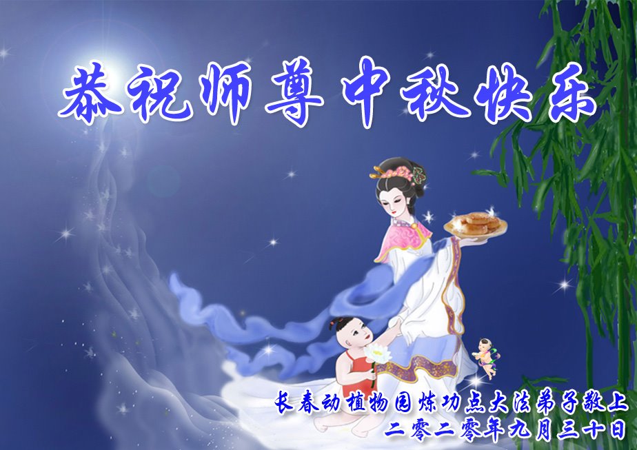 合十!叩谢师恩! 吉林省长春两位大法弟子家属恭祝师父中秋节快乐!