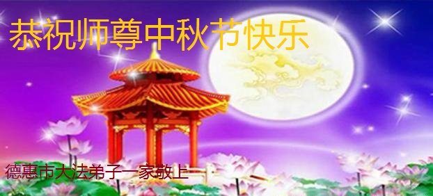 相见欢·中秋 ——恭祝慈悲伟大的师尊庚子年中秋快乐! 福音真相频传,救人还。正是慈悲大法正人间。 中秋节,思念切,月高悬,终有普天同庆喜团圆。 吉林省长春市大法弟子 敬上 叩拜 吉林省长春市德惠市大法弟子一家恭祝师尊中秋节快乐!