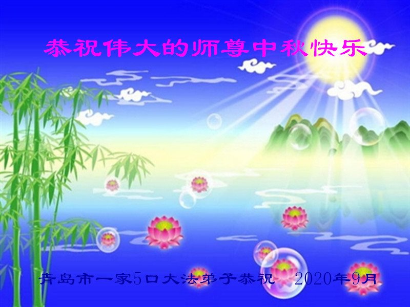 向慈悲伟大的师尊问好,感谢师尊慈悲救度,请师尊放心,我们一定做好三件事跟师尊回家。 山东省青岛大法弟子祝师尊中秋快乐!