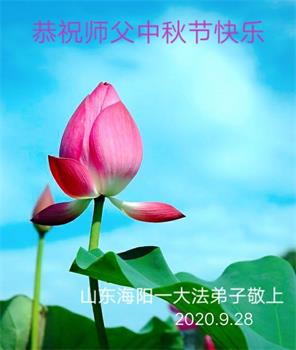 【明慧网二零二零年十月一日】 山东省烟台市海阳市一乡村老年大法弟子恭祝慈悲伟大的师尊中秋节快乐!