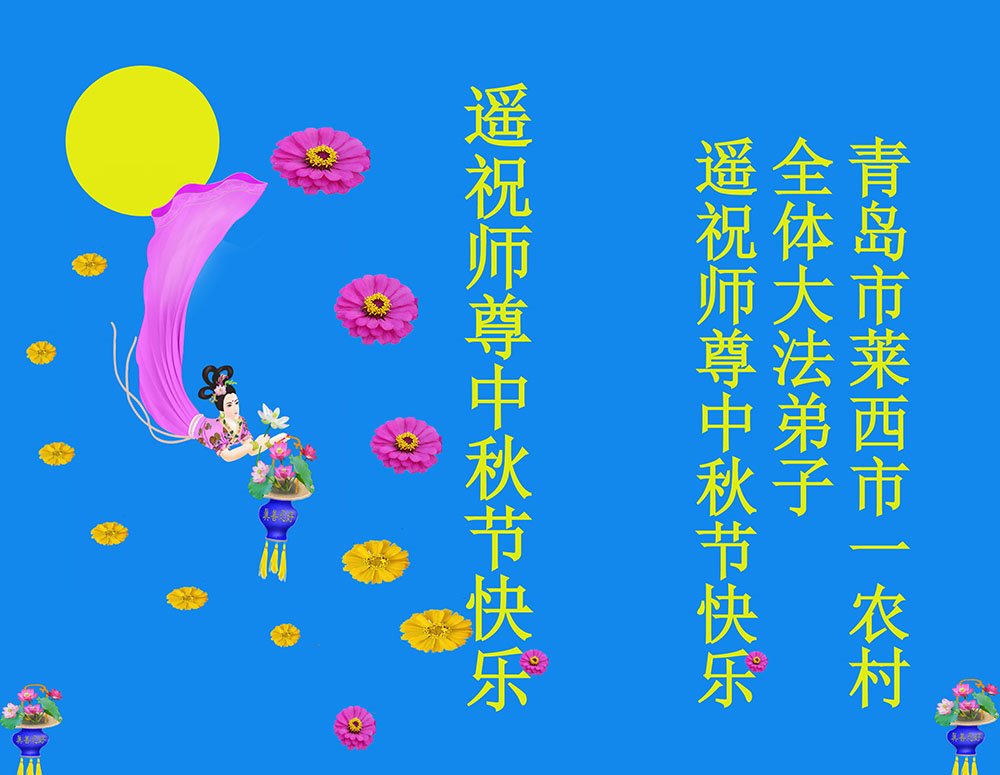 感谢师父把我们从地狱中捞起、洗净,使我们走上返本归真的路 。我们信师信法,走出去讲真相救度众生一天没停过。请师尊放心!我们一定履行誓约,助师世间行。弟子叩拜师尊!石家庄地区赵县农村大法弟子敬上! 山东省青岛一乡村全体大法弟子恭祝师尊中秋节快乐!