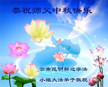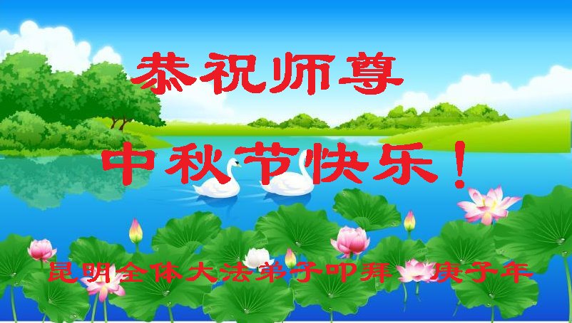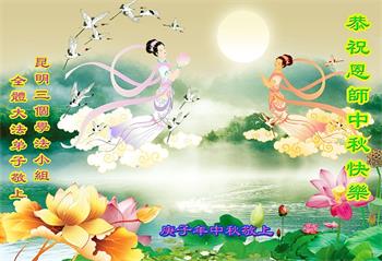 云南昆明新迎学法小组大法弟子恭祝师父中秋快乐!