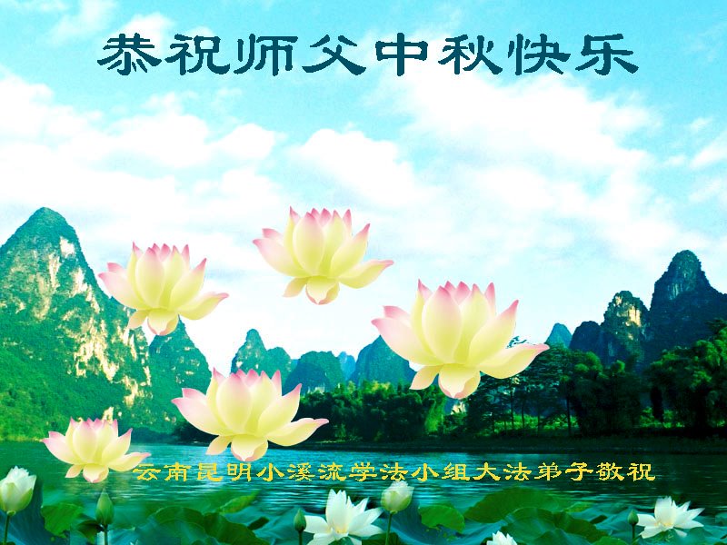 云南昆明小溪流学法小组大法弟子恭祝师父中秋快乐!