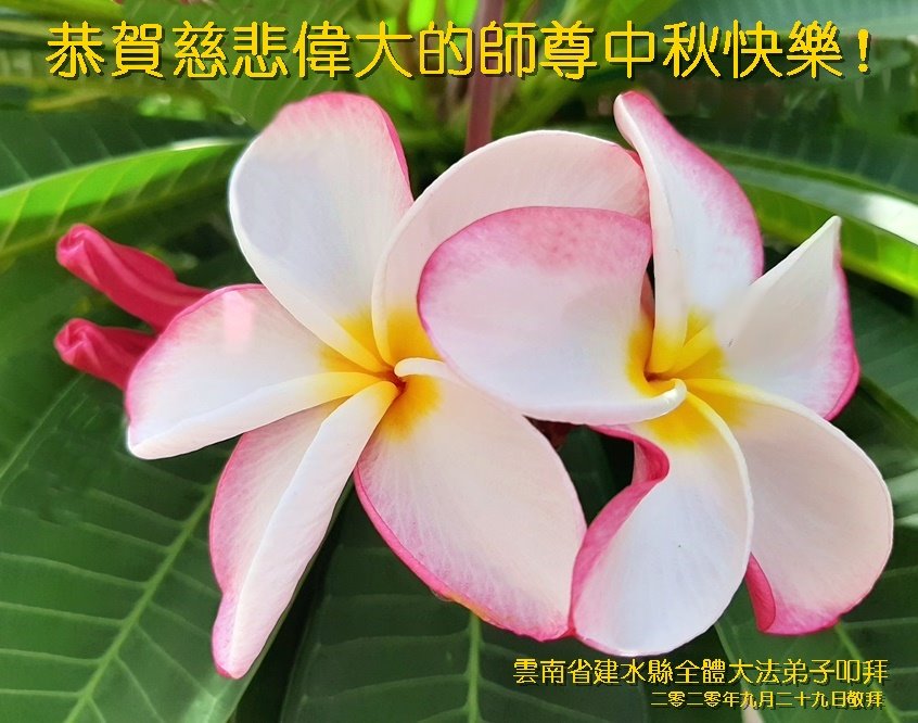 从得法走到今天,弟子们都是在师父的慈悲保护下走过来的。大法法理启悟着弟子们的正念。以后的修炼路上,弟子们会相互扶持、坚定、平稳的做好三件事,请师父放心!在此弟子叩谢师尊慈悲救度之恩! 云南大法弟子恭祝师尊中秋节快乐!