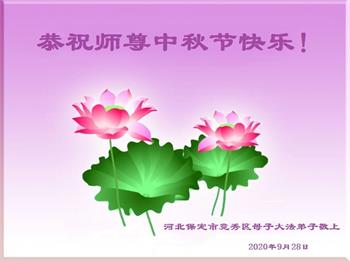 【明慧网二零二零年十月一日】 河北省保定市安国市大法弟子恭祝师父中秋快乐!