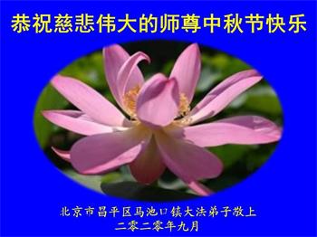 在中秋节来临之际,北京房山大法弟子在此叩谢师尊苦度之恩,弟子们一定实修真修完成使命,叩谢师尊! 北京市丰台区一法轮功学员恭祝慈悲伟大的师父中秋节快乐!