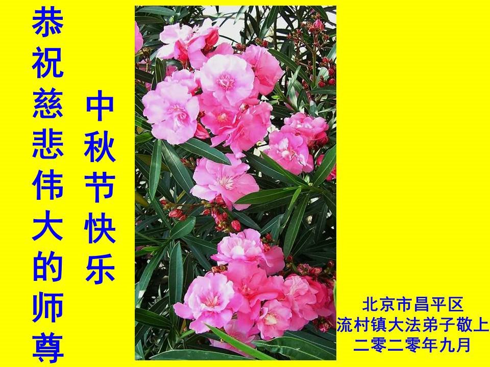 在这正法的最后时刻,弟子一定勇猛精進,做好三件事,跟上正法進程,多救人,坚修大法到底!跟随师父進入新宇宙美好的家园!谢谢师尊的慈悲救度! 北京市昌平区马池口镇全体大法弟子恭祝师尊中秋快乐!