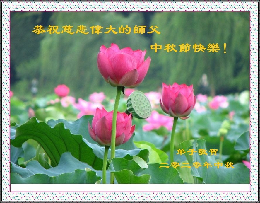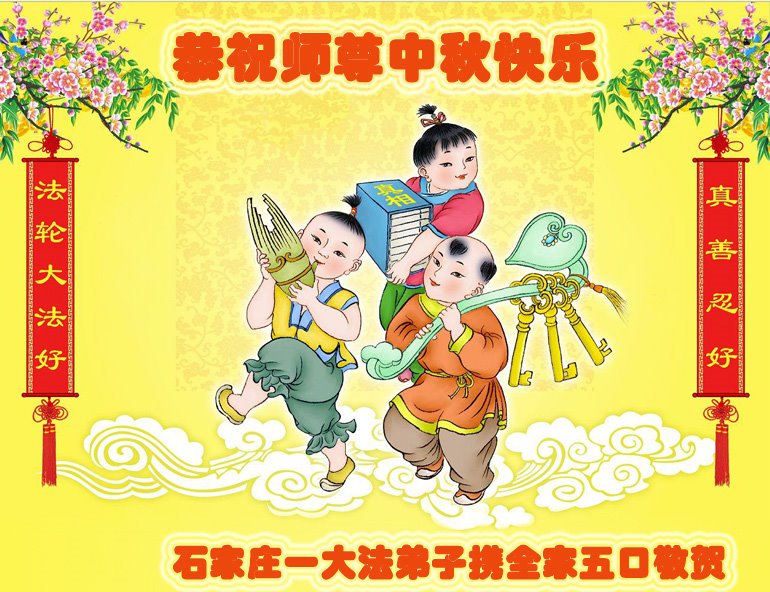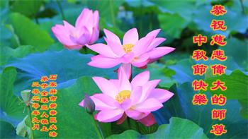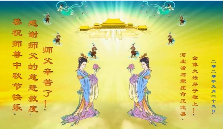 谢谢师父慈悲救度,师父您辛苦了!法轮大法好,真、善、忍好。 河北省石家庄长安区三人学法组大法弟子恭祝师尊中秋节快乐!