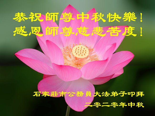 河北新乐大法弟子敬贺 二零二零年九月二十九日 河北石家庄大法弟子家属恭祝恩师中秋快乐!