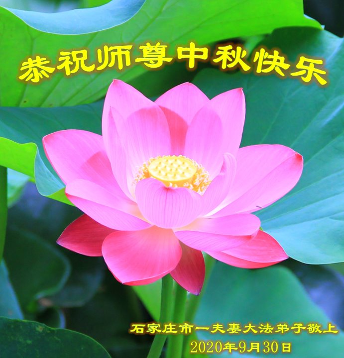 每逢佳节倍思亲。在中秋节来临之际,感恩大法师父的慈悲保护!我们盼望您早日回归中土,恩泽百姓,让亿万个家庭解开中共的枷锁,让中华民族五千年的文明在中原再现。 河北省石家庄市正定县全体大法弟子恭祝师尊中秋节快乐! 二零二零年九月二十九日 河北省石家庄市新华区大法弟子恭祝师尊中秋快乐!