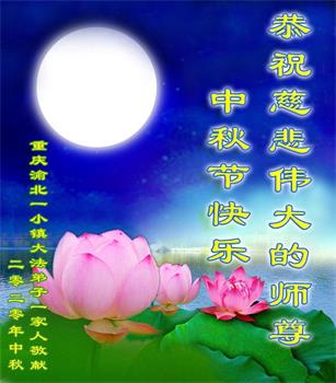 重庆渝北区一小镇大法弟子一家人恭祝慈悲伟大的师尊中秋快乐!
